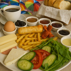 (Yumurta,sosis,patates kızartması,peynir,çikola...